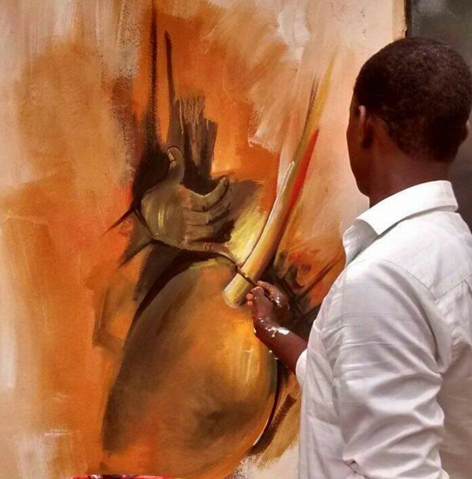 Dans la pratique de l’art artistique, ce qui l'interesse c’est de pouvoir passer des messages à travers ses œuvres, d’où le choix de ses techniques qui sont : l’abstrait figuratif, le portrait et de représenter des scènes qui parlent de la vie quotidienne.